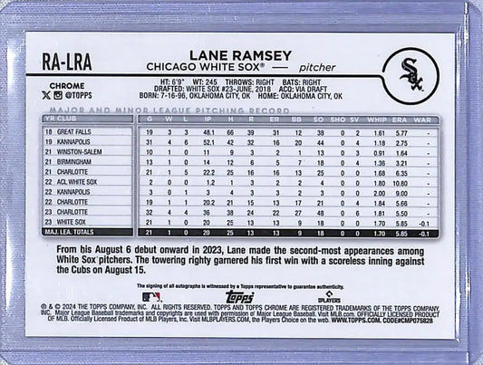 2024 Topps Chrome #RA-LRA Lane Ramsey NM-MT RC Rookie Auto