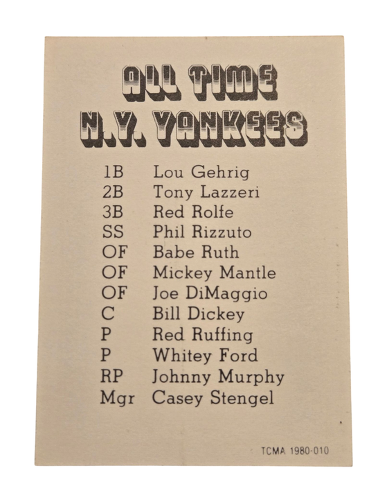 TCMA All Time N.Y. Yankees 12 Card Set 1980 Lou Gehrig Babe Ruth Mantle DiMaggio