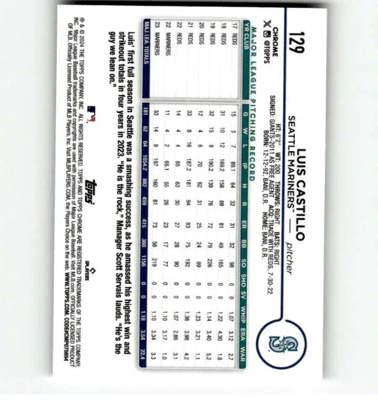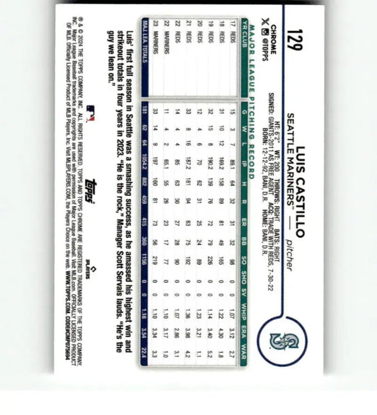 2024 Topps Chrome Refractor #129 Luis Castillo NM-MT Seattle Mariners Baseball Card