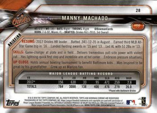 2018 Bowman #28 Manny Machado NM-MT Orioles ID:10920