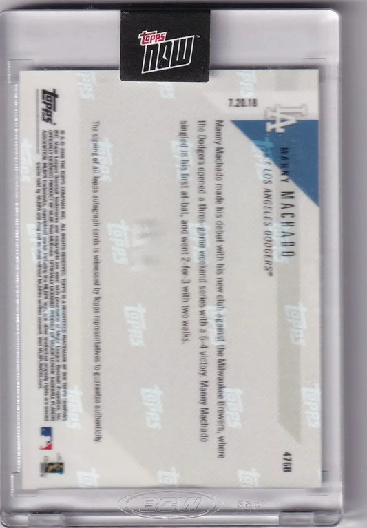 2018 Topps Now Auto #476B Manny Machado 21/49 - Los Angeles Dodgers