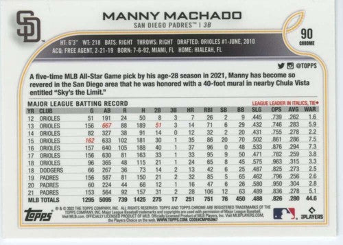 2022 Topps Chrome #90 Manny Machado NM-MT Padres ID:51634