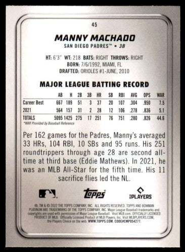 2022 Bowman Platinum #45 Manny Machado NM-MT Padres ID:51672