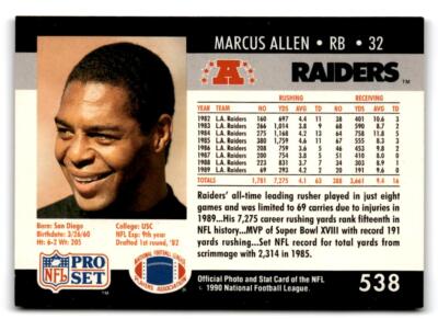 1990 Pro Set #538 Marcus Allen