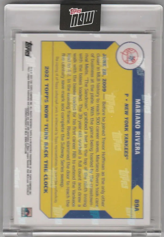 2021 TOPPS NOW TURN BACK CLOCK AUTO #89A MARIANO RIVERA 19/49 NEW YORK YANKEES