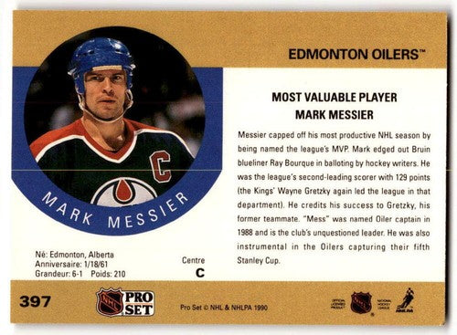 1990-91 Pro Set #397 Mark Messier NM Near Mint Oilers MVP ID:43238
