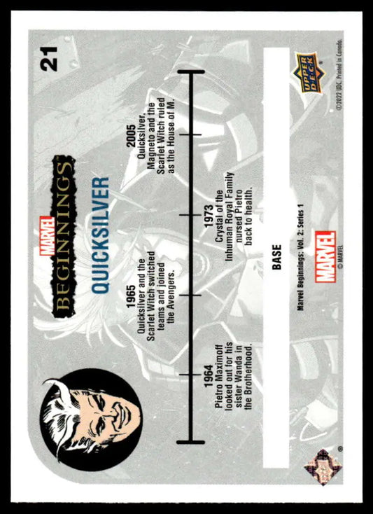 2022 Upper Deck Marvel Beginnings Vol. 2 Series 1 #21 Quicksilver NonSport