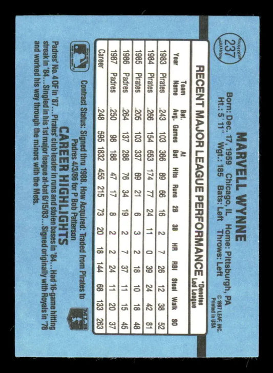 1988 Donruss #237 Marvell Wynne EX San Diego Padres Baseball Card