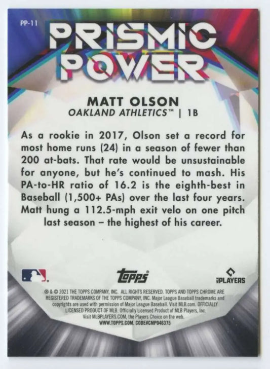 2021 Topps Chrome Prismic Power Refractor #PP-11 Matt Olson NM-MT Oakland Athletics Baseball Card