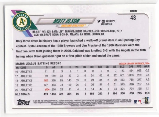 2021 Topps Chrome Refractor #48 Matt Olson NM/MT Oakland Athletics Baseball Card