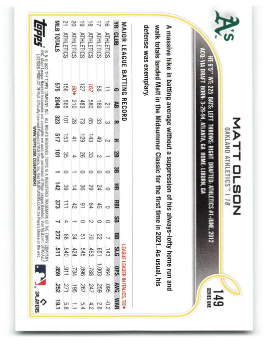 2022 Topps #149 Matt Olson NM-MT Athletics ID:40970
