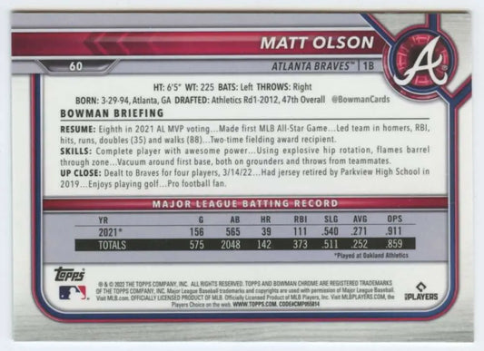 2022 Bowman Chrome #60 Matt Olson NM-MT Atlanta Braves Baseball Card