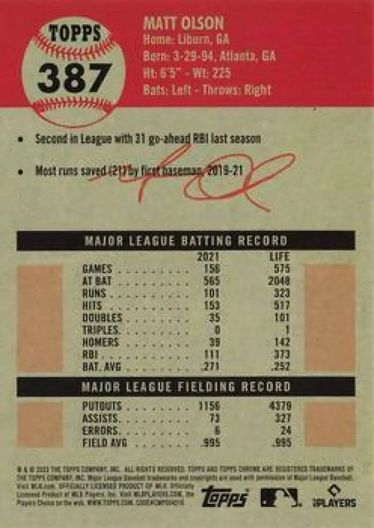 2022 Topps Chrome Platinum Anniversary #387 Matt Olson NM-MT Atlanta Braves Baseball Card