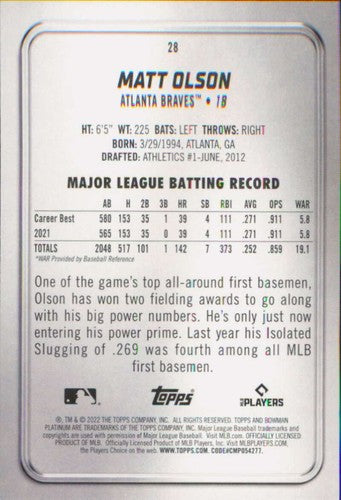 2022 Bowman Platinum #28 Matt Olson NM-MT Braves ID:51675