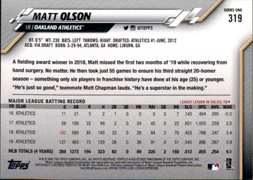 2020 Topps #319 Matt Olson NM-MT Athletics