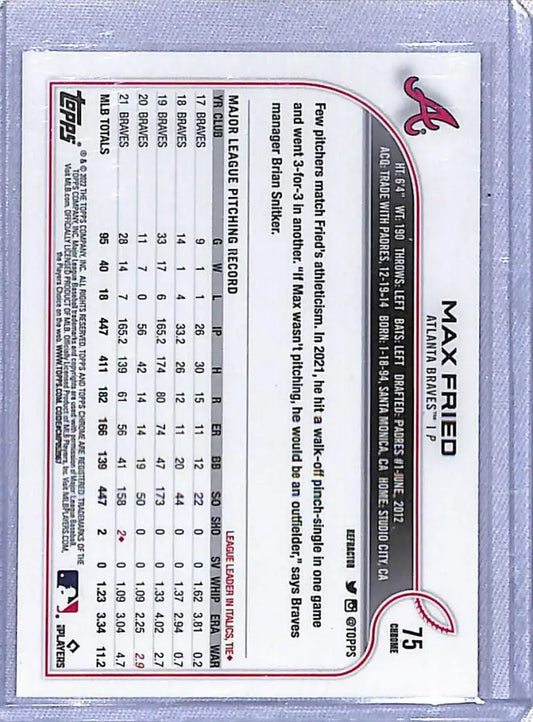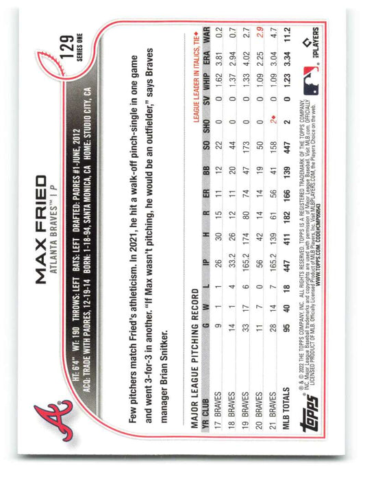 2022 Topps #129 Max Fried NM-MT Braves ID:40954