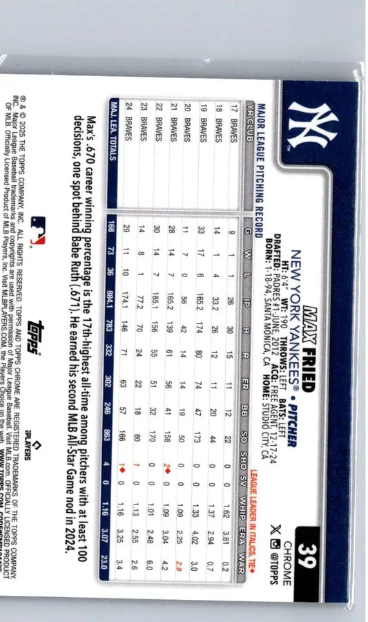 2025 Topps Chrome #39 Max Fried X-Fractors