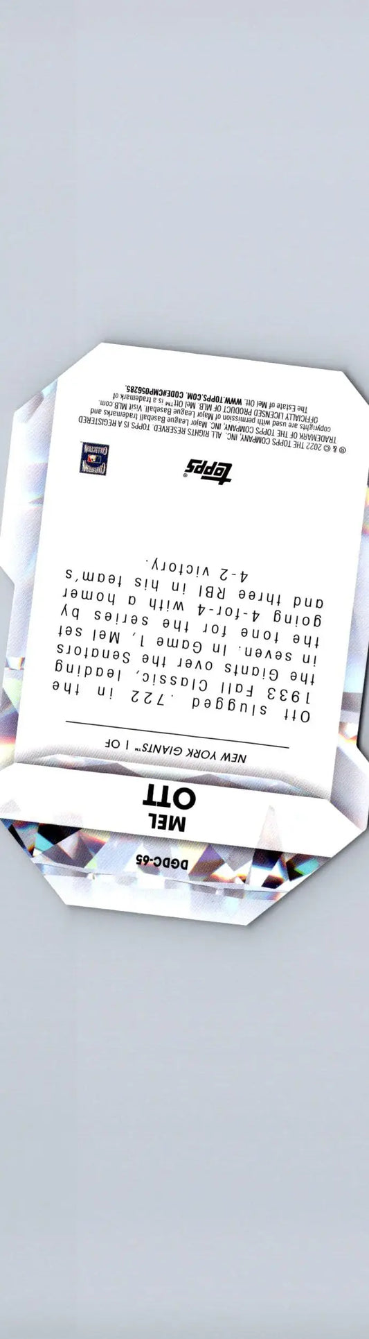 2022 Topps Update #DGDC-65 Mel Ott Diamond Greats Die Cuts