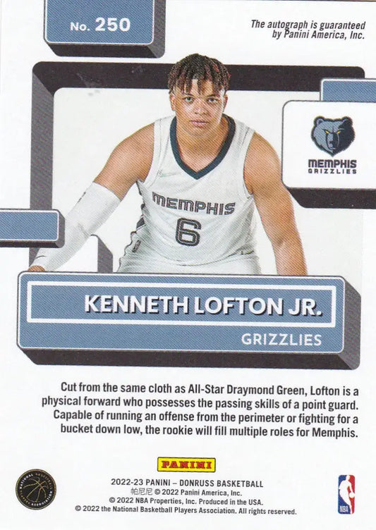 2022 PANINI DONRUSS #250 KENNETH LOFTON JR AUTO- MEMPHIS GRIZZLIES