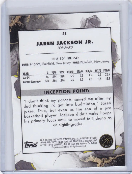 2025 TOPPS INCEPTION #41 JAREN JACKSON JR- MEMPHIS GRIZZLIES
