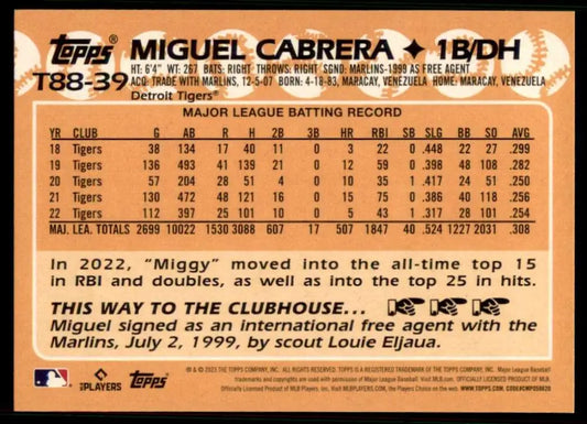 2023 Topps 1988 Baseball #T88-39 Miguel Cabrera NM-MT Detroit Tigers Baseball Card