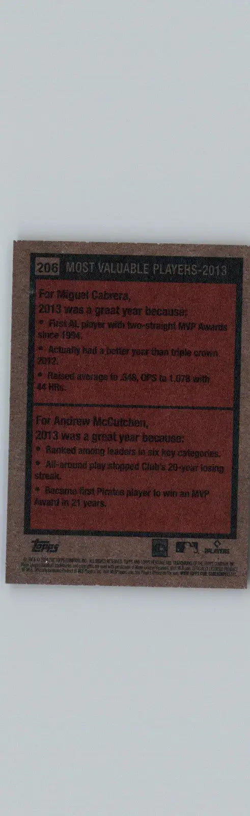 2024 Topps Heritage #206 2013 MVPs (Miguel Cabrera / Andrew McCutchen) MVP