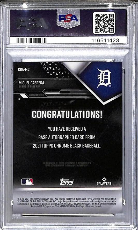 2021 Topps Chrome Black Refractor Green #CBA-MC Miguel Cabrera PSA 10 GEM MINT Auto 6/99 Detroit Tigers Baseball Card
