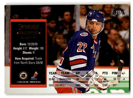 1991-92 Topps Stadium Club #51 Mike Gartner NM-MT New York Rangers Hockey Card