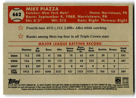 2021 Topps Chrome Platinum Anniversary #662 Mike Piazza NM-MT New York Mets Baseball Card