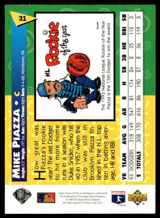 1994 Upper Deck Fun Pack #31 Mike Piazza EX/NM Los Angeles Dodgers Baseball Card
