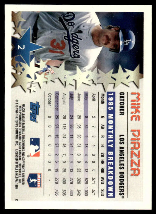 1996 Topps #2 Mike Piazza EX/NM Los Angeles Dodgers Baseball Card