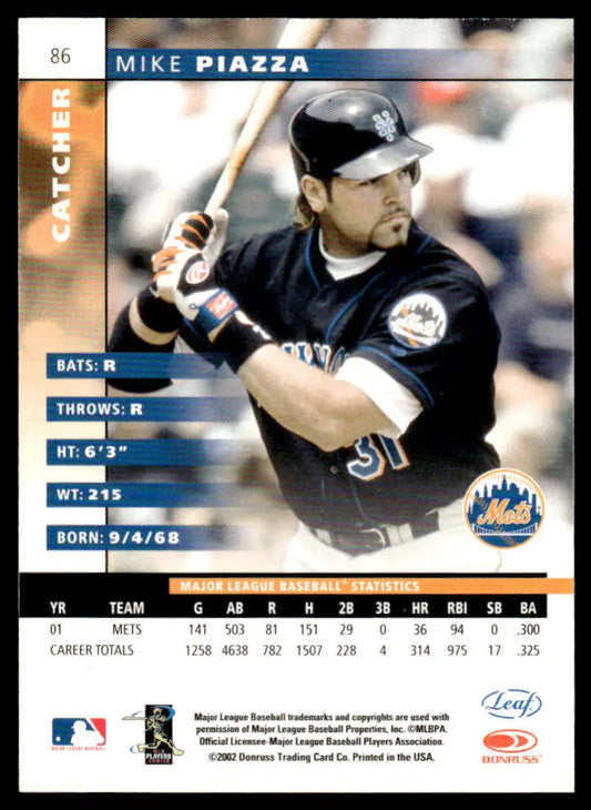 2002 Leaf #86 Mike Piazza EX/NM New York Mets Baseball Card