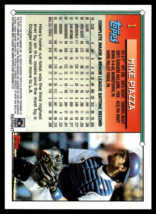 2011 Topps #1 Mike Piazza EX/NM Los Angeles Dodgers Baseball Card