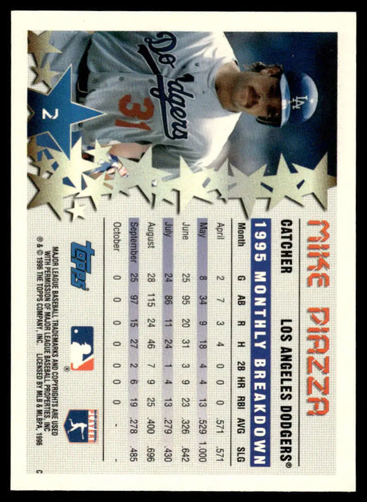 1996 Topps #2 Mike Piazza EX/NM Los Angeles Dodgers Baseball Card