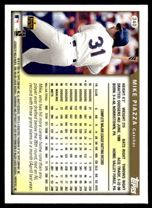 1999 Topps #340 Mike Piazza EX/NM New York Mets Baseball Card