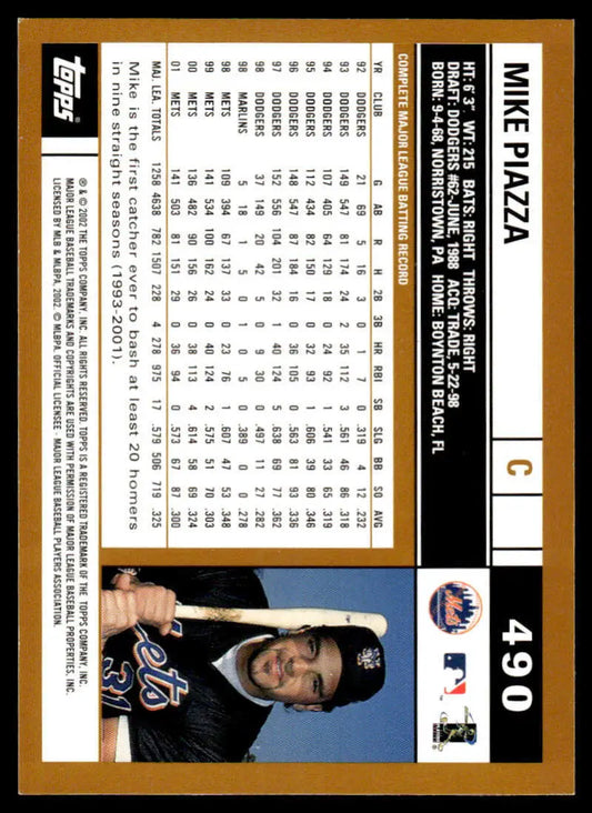 2002 Topps #490 Mike Piazza EX/NM New York Mets Baseball Card