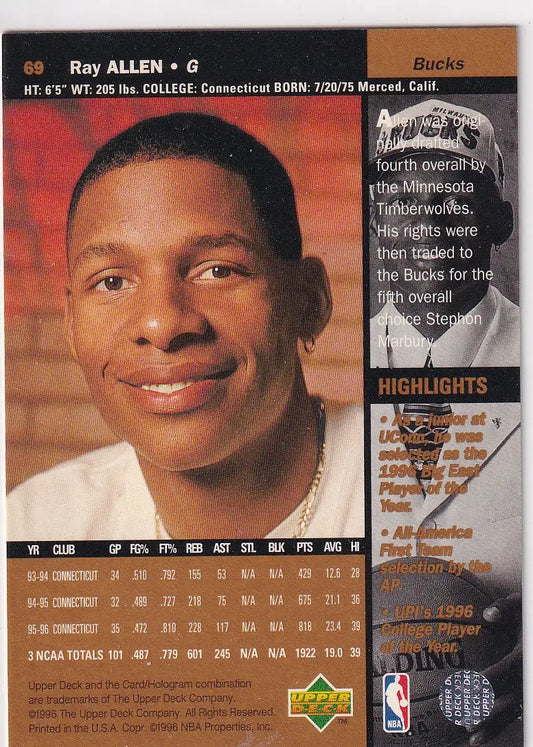 1996 UPPER DECK #69 RAY ALLEN- MILWAUKEE BUCKS