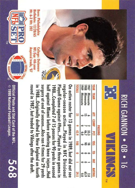 1990 Pro Set #568 Rich Gannon NM-MT RC Rookie Minnesota Vikings Football Card