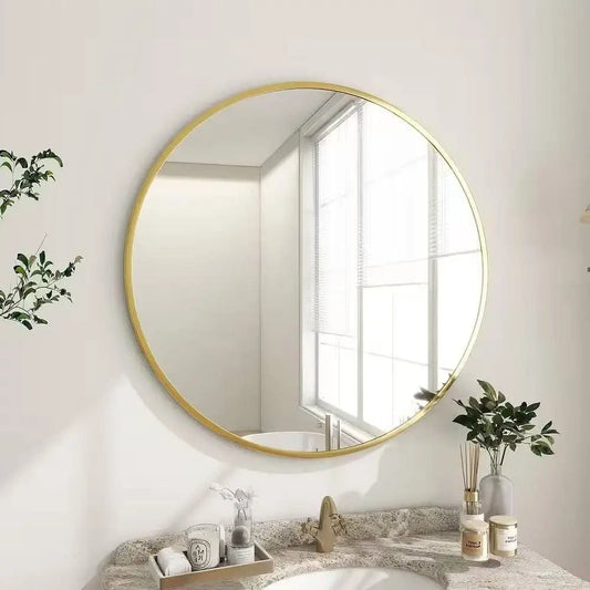 Round 30-inch Circular Bathroom Wall Mirror with Gold Frame