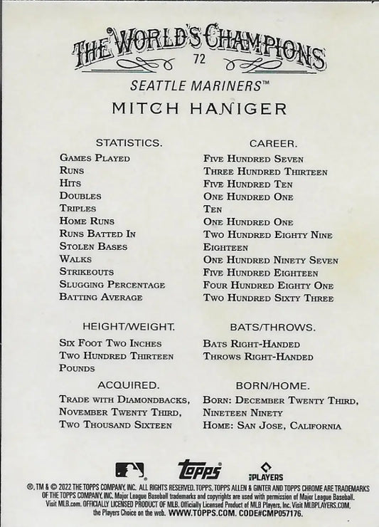 2022 Topps #SMLB-53 Mitch Haniger NM-MT Seattle Mariners Baseball Card