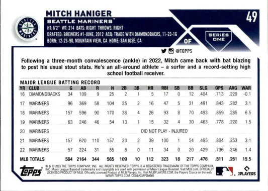 2023 Topps #49 Mitch Haniger NM-MT Seattle Mariners Baseball Card