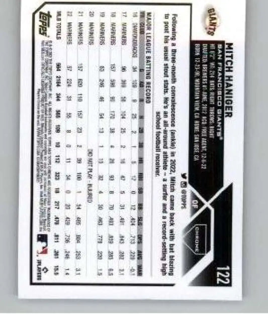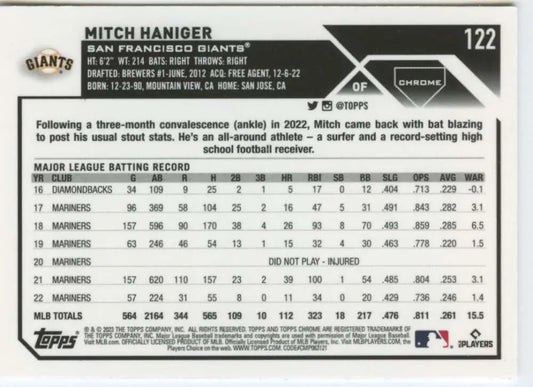 2023 Topps Chrome #122 Mitch Haniger NM-MT San Francisco Giants Baseball Card
