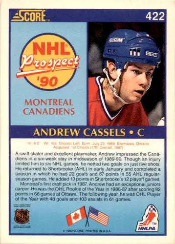 1990-91 Score #422 Andrew Cassels NM Near Mint RC Rookie Canadiens ID:46053