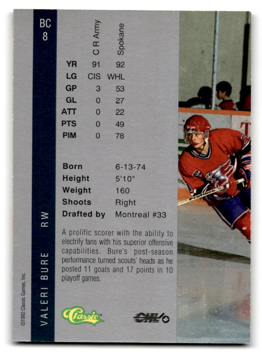 1992 Classic Four Sport Valeri Bure Bonus Cards #BC8 Canadiens
