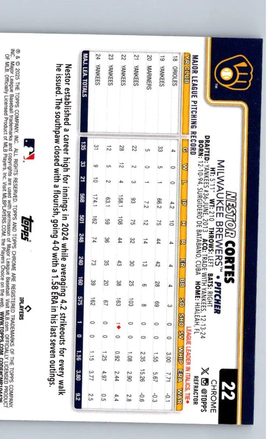 2025 Topps Chrome #22 Nestor Cortes Refractors