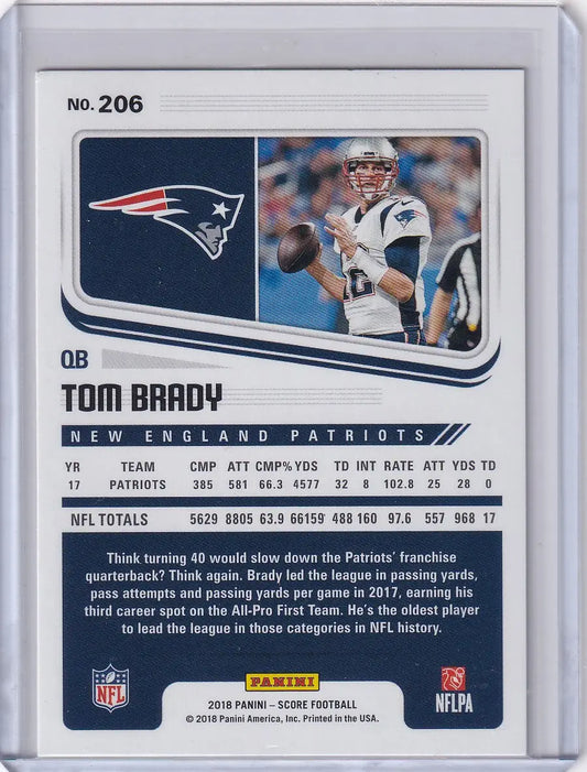 2018 Panini Score #206 Tom Brady - New England Patriots