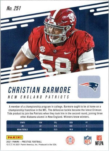 2021 Panini Prestige #251 Christian Barmore NM-MT RC Rookie Patriots