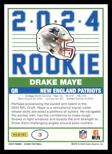 2024 Score 35th Anniversary Rookie #3 Drake Maye NM-MT Patriots ID:75482