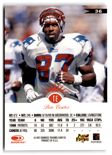 1997 Leaf #36 Ben Coates NM Near Mint Patriots ID:73450