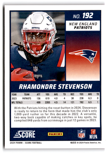 2024 Score Ellipse #192 Rhamondre Stevenson NM-MT 224/299 Patriots ID:75492